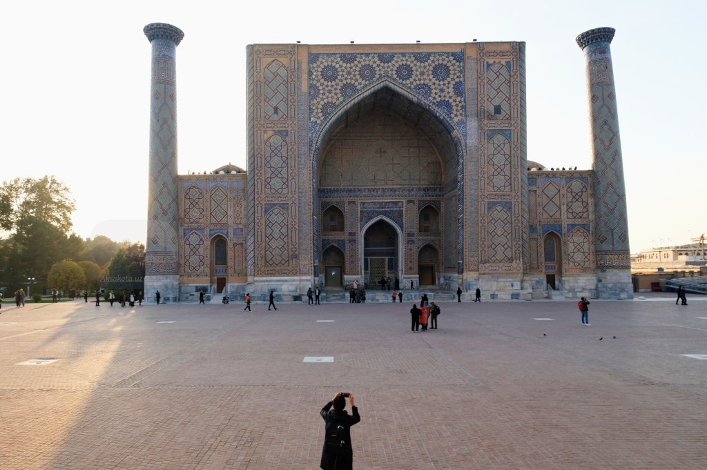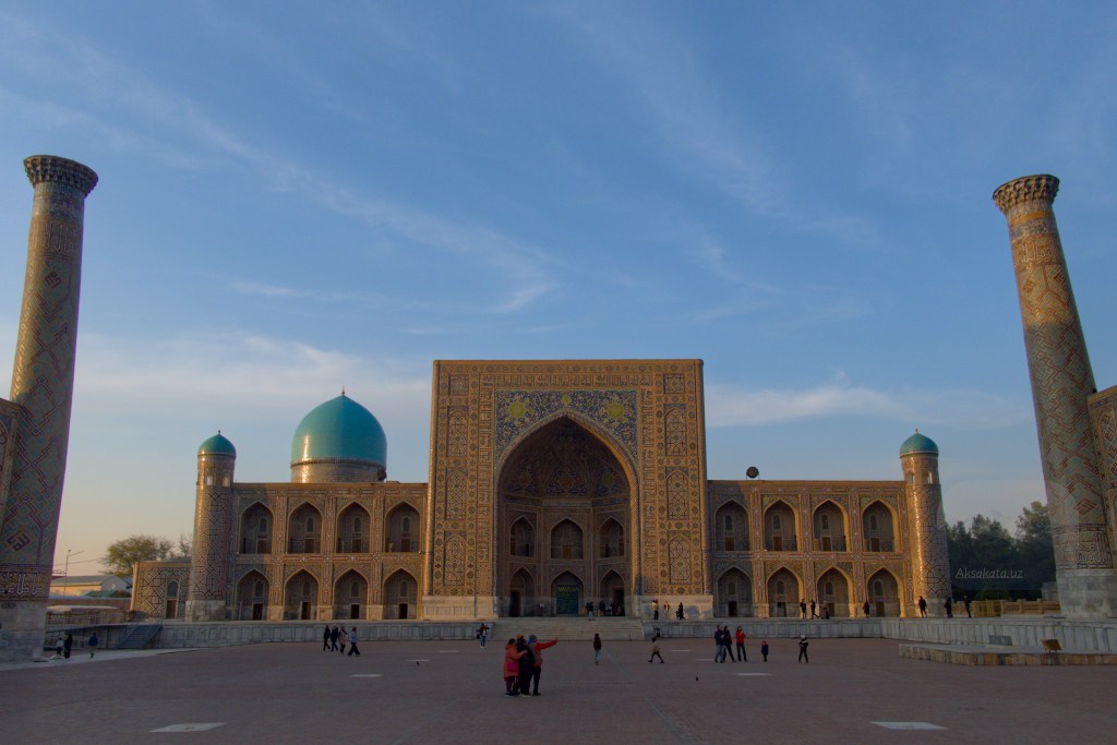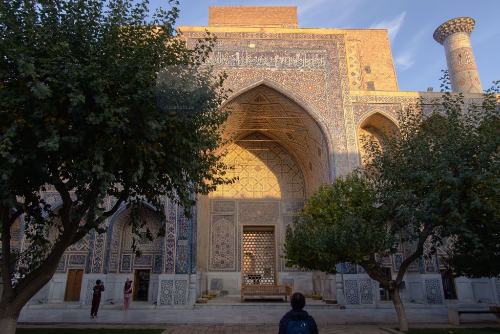 По пути к Регистану не забудьте паспорта. Вход нам обошёлся по 10 и 15 тыс., а для обладателей иностранных паспортов – 100 тыс. сум. Архитектурный ансамбль площади включает медресе Улугбека 15 века, Тилля-Кари и Шердор, построенные в 17 веке.